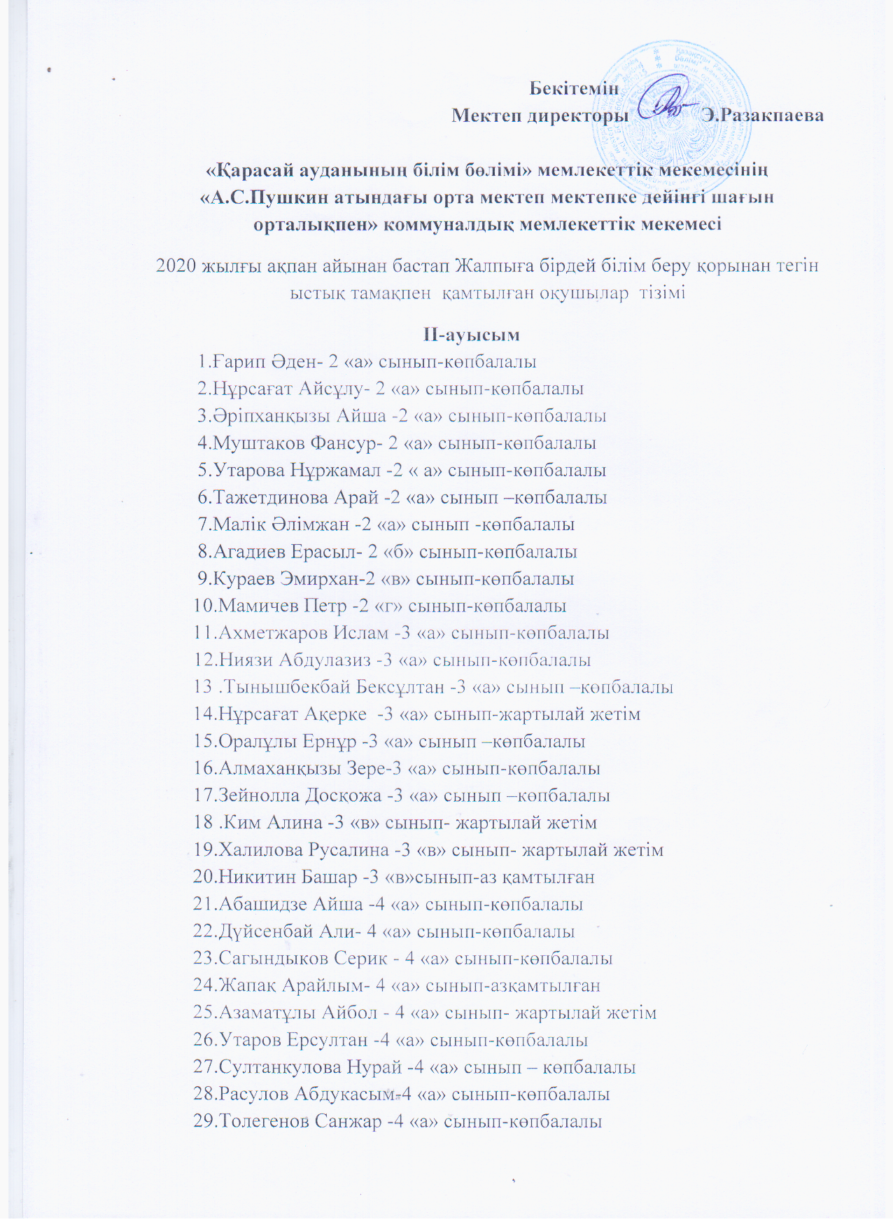 "Пушкин атындағы орта мектеп"