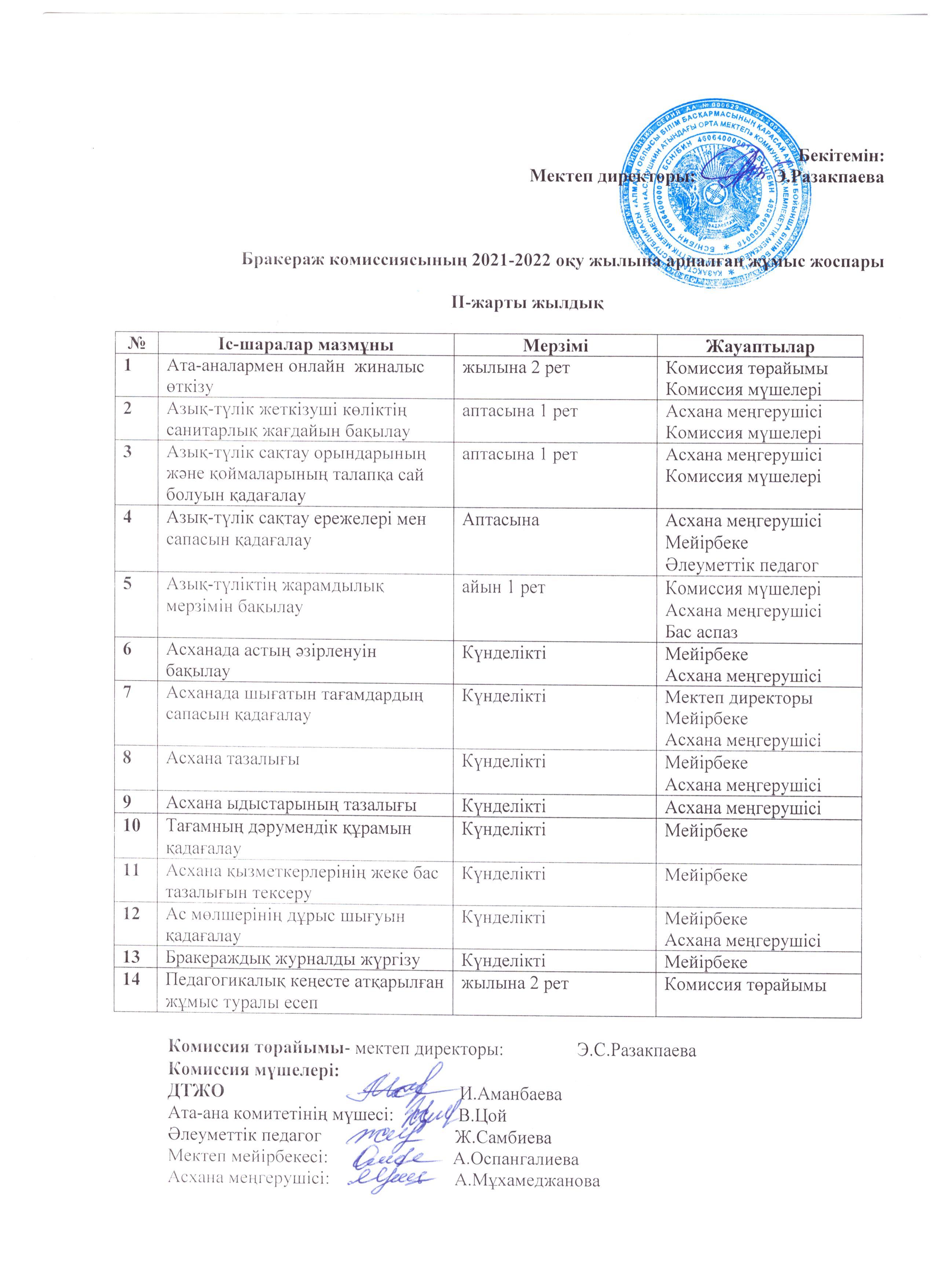 17 январь 2022 0 1 2 3 4 5 Бракераж комиссиясының 2021-2022 оқу жылына арналған жұмыс жоспары II жартыжылдық