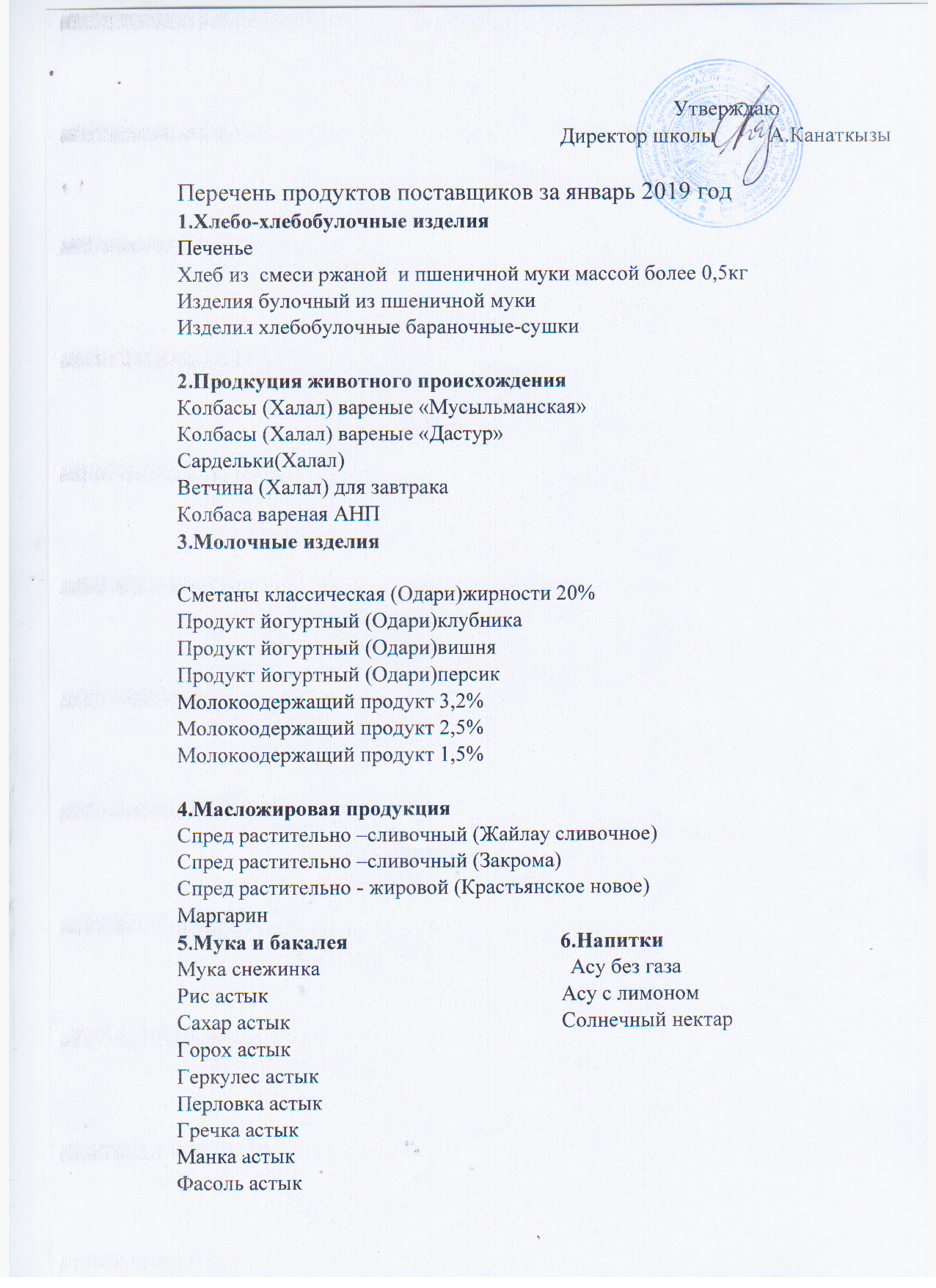 Перечень продуктов поставщиков для столовой » "Алматы облысы білім басқармасының Қарасай ауданы бойынша білім бөлімі"мемлекеттік мекемесінің "А.С.Пушкин атындағы орта мектеп " коммуналдық мемлекеттік мекемесі