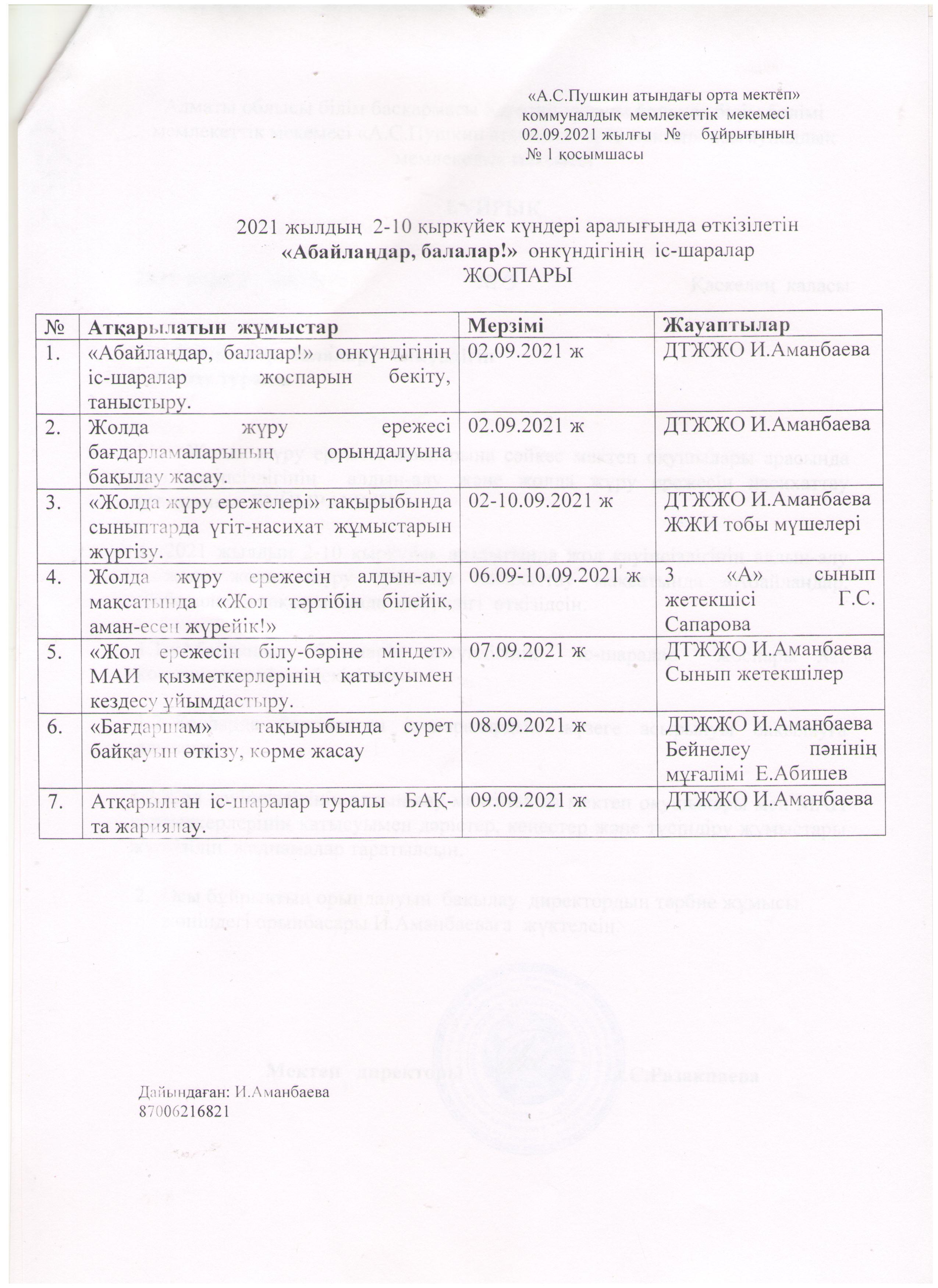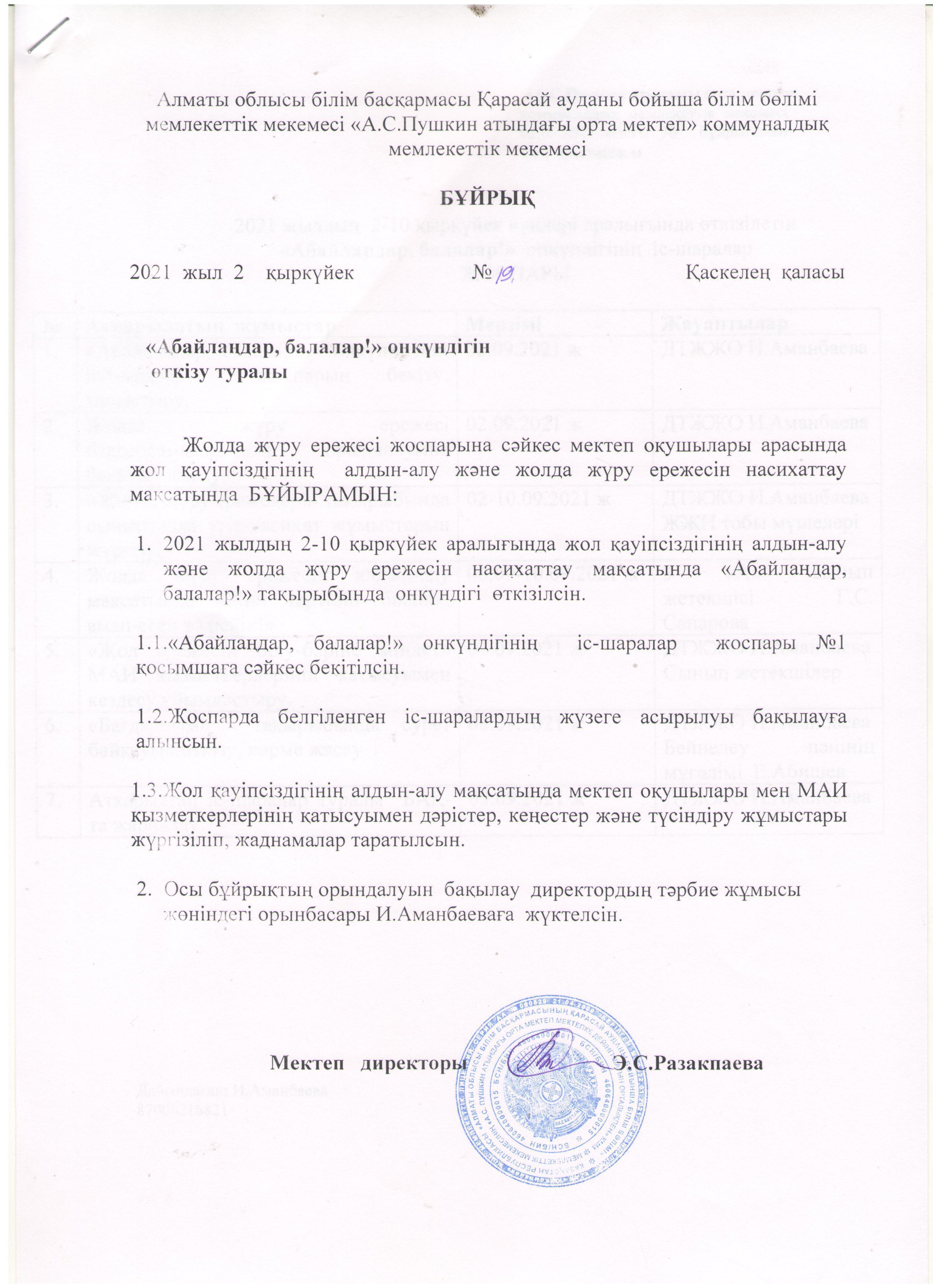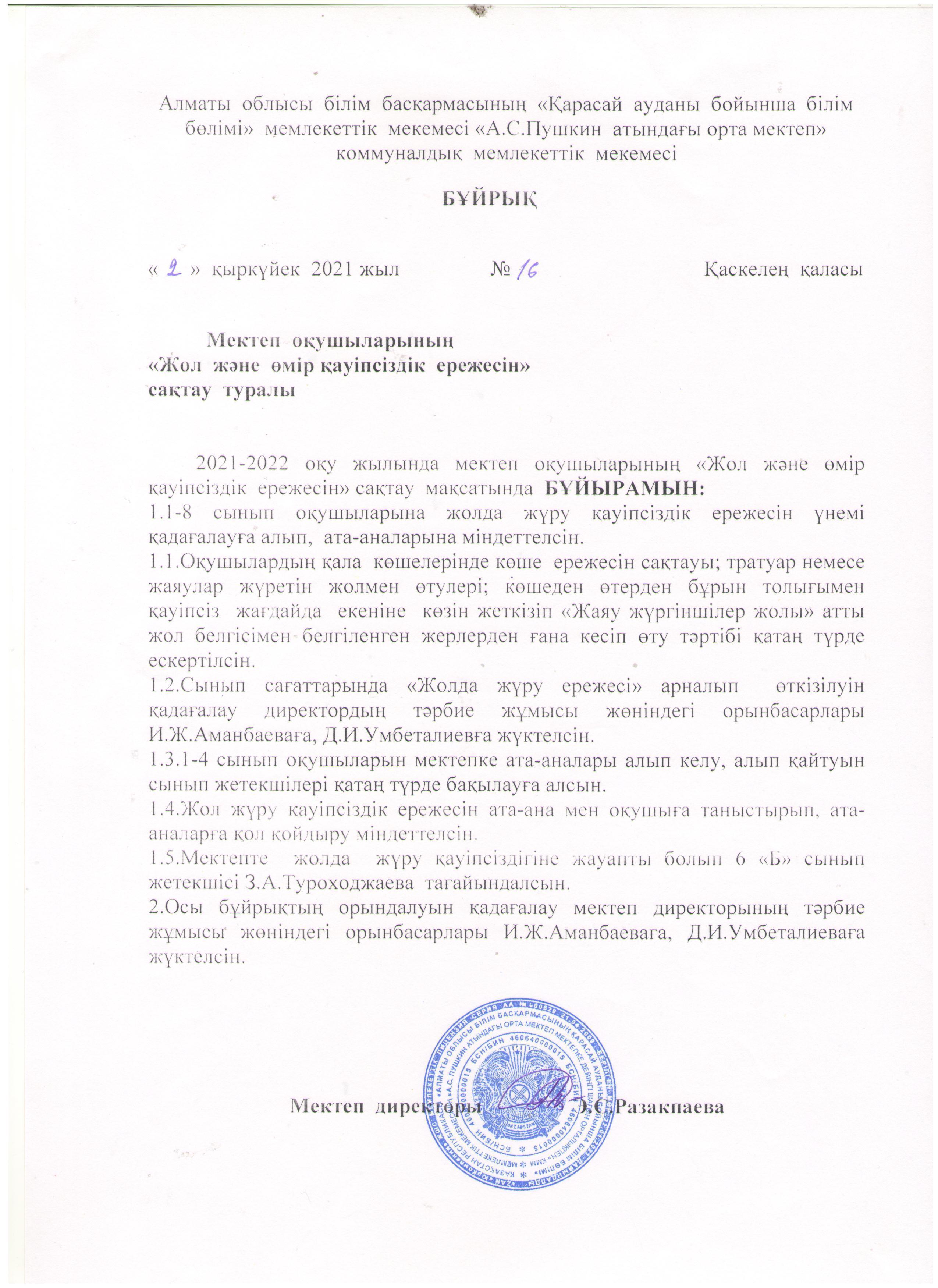 02 сентябрь 2021 0 1 2 3 4 5 Мектеп оқушыларының "Жол және өмір қауіпсіздік ережесін" сақтау туралы бұйрық